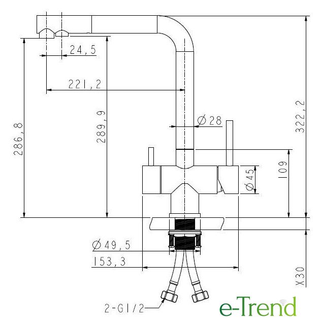 | Длина (вылет) излива | 221.2 мм |