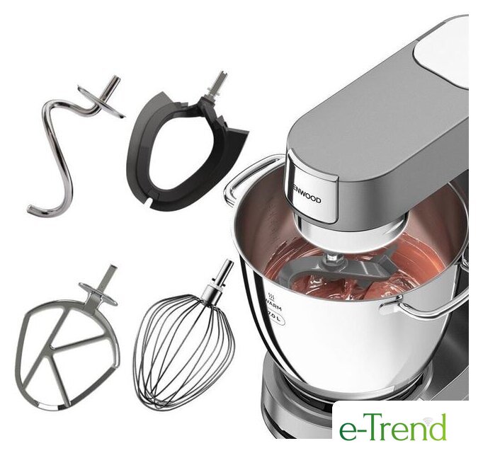 | Полная комплектация | венчик, крюк для теста, К-образная насадка, насадка гибкий-взбиватель, защитная крышка, жаростойкая лопатка, 2 чаши. |