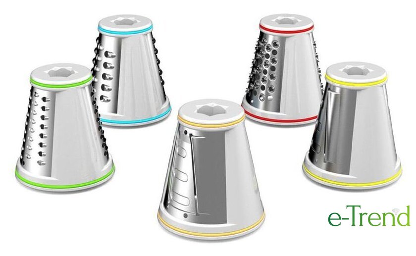 | Полная комплектация | 3 терки - крупная, средняя, мелкая2 шинковки - крупная, мелкая |