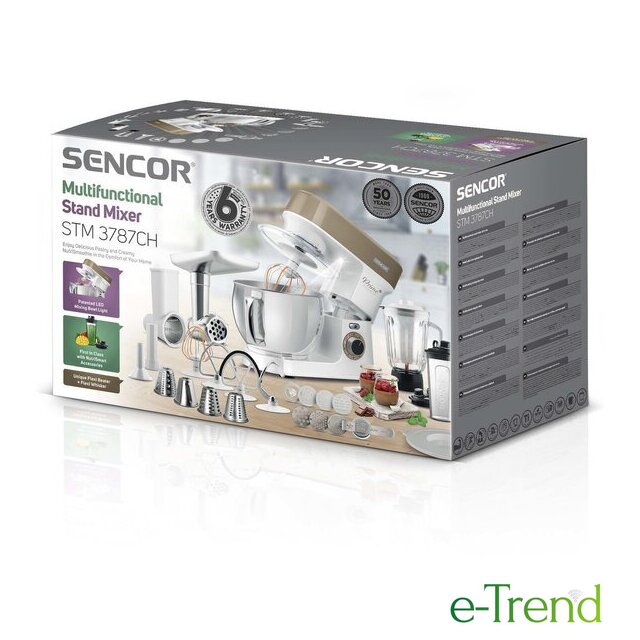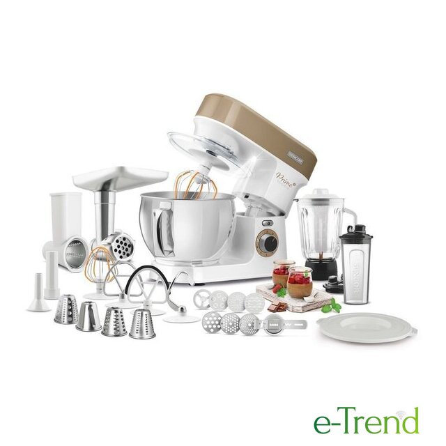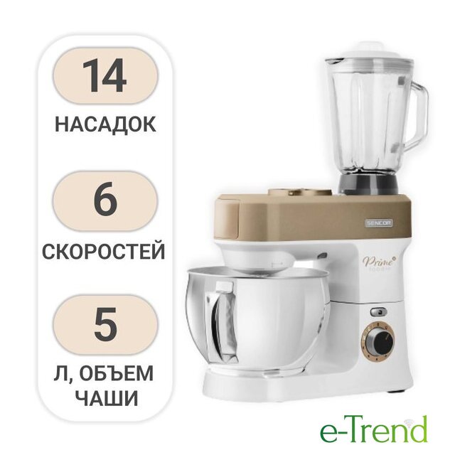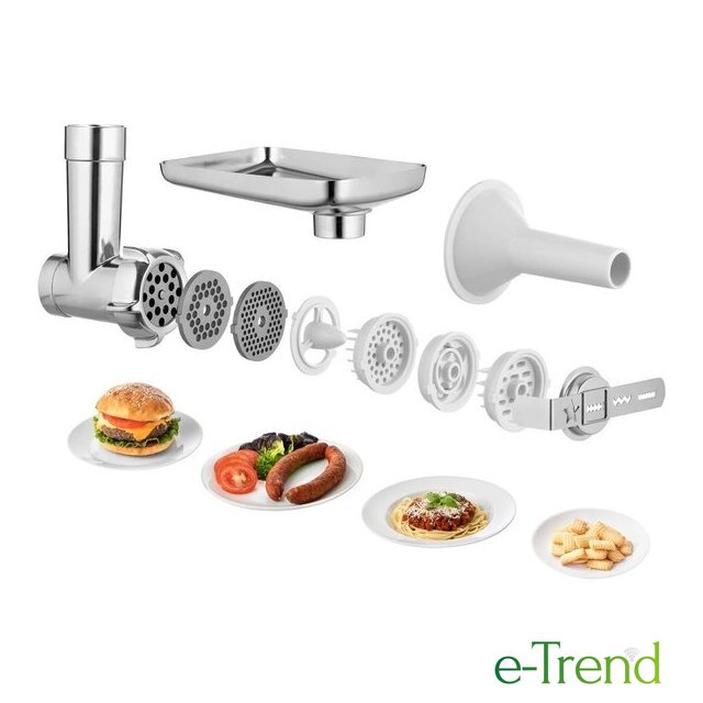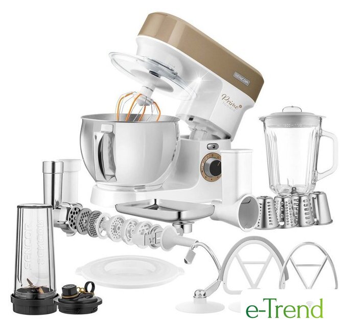 | Полная комплектация | Стеклянная чаша блендера 1,5лЧаша миксера 5лДве насадки для смешиванияНасадка для тестаВенчикМясорубка с насадками для регулировки степени измельчения, набивки колбас, изготовления пасты и насадкой-шаблоном для формовки печеньяТолкательОвощерезка с 4 терками (мелкая терка, крупная терка, измельчение, нарезка ломтиками)Миксер для смузи 0,6л с крышкой для использования в качестве дорожной бутылки |