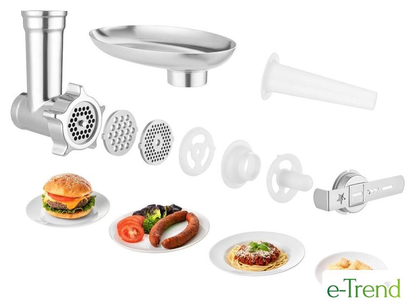 | Функции | мясорубка, блендер, взбивание, смешивание, замешивание дрожжевого теста, измельчитель, рубка, терка, шинковка, ломтерезка, помол круп, кофе |