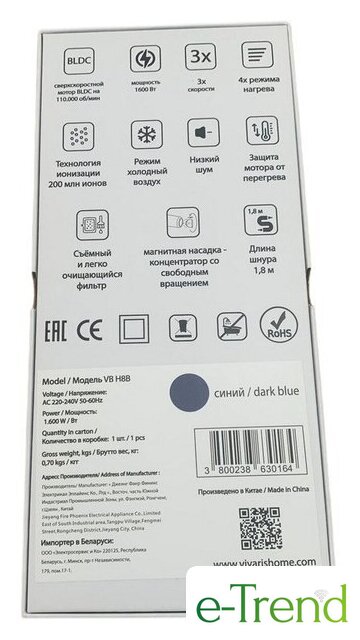 Импортеры: ООО «Электросервис и Ко», г. Минск, пр. Независимости, 179, пом. 17-1 ООО «ТрайдексБелПлюс», Минский район, Новодворский с/с 33-1, район д. Большое Стиклево, административно-складской корпус АСА, 3 этаж, офис 64 ООО «Аймдистри» г. Минск, ул. Я.Коласа 37, оф.24 ООО "БизнесАкила", 222937, Минская область, г. Мядель, ул. Шаранговича, д. 2, комн. 2. ЗАО «Патио», г. Минск, пр. Независимости, дом № 58, офис 301 ООО «Триовист», г. Минск, ПОБЕДИТЕЛЕЙ пр., дом № 100, офис 203 ООО «ТрайдексБелПлюс», Минский район, Новодворский с/с 33-1, район д. Большое Стиклево, административно-складской корпус АСА, 3 этаж, офис 64 ООО «Домотехника», г. Минск, пр. Победителей,106 помещение № 17
