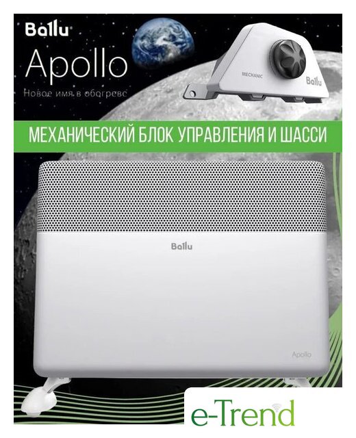 | Комплектация | Отопительный модуль конвектора Ballu BEC/AT-1500; Ножки для обогревателя Ballu Apollo BFT/AT; Термостат для климатической техники Ballu Apollo Transformer BCT/EVU-3M |