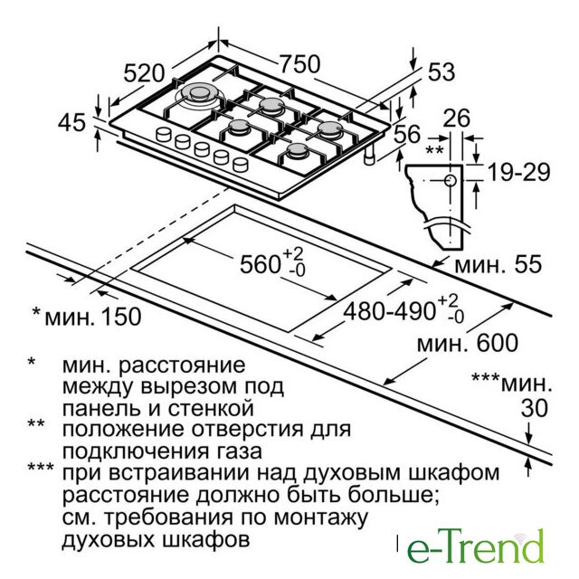 | Чугунные конфорки | нет |