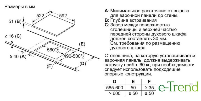 Размеры ниши для встраивания |