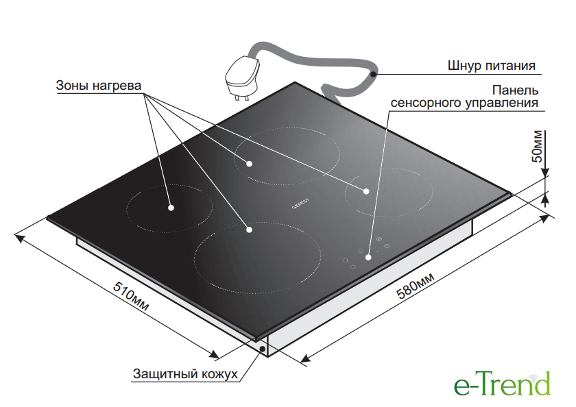 | Диаметр посуды | 90 — 210 мм |