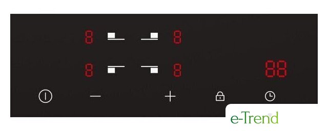 | Подробная информация о конфорках | Передняя левая200 мм / 1.8 кВтПередняя правая165 мм / 1.2 кВтЗадняя левая165 мм / 1.2 кВтЗадняя правая200 мм / 1.8 кВт |