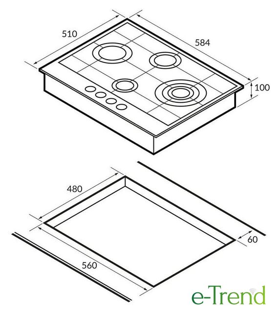 | Подробная информация о конфорках | 3400 Вт, 2400 Вт, 1800 Вт, 1000 Вт |