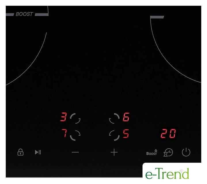 | Подробная информация о конфорках | Дальняя левая: 160 мм * 1,3/1,5 кВт; Дальняя правая: 180 мм * 1,8/2,2 кВт; Ближняя левая: 180 мм * 1,8/2,2 кВт; Ближняя правая: 160 мм * 1,3/1,5 кВт |