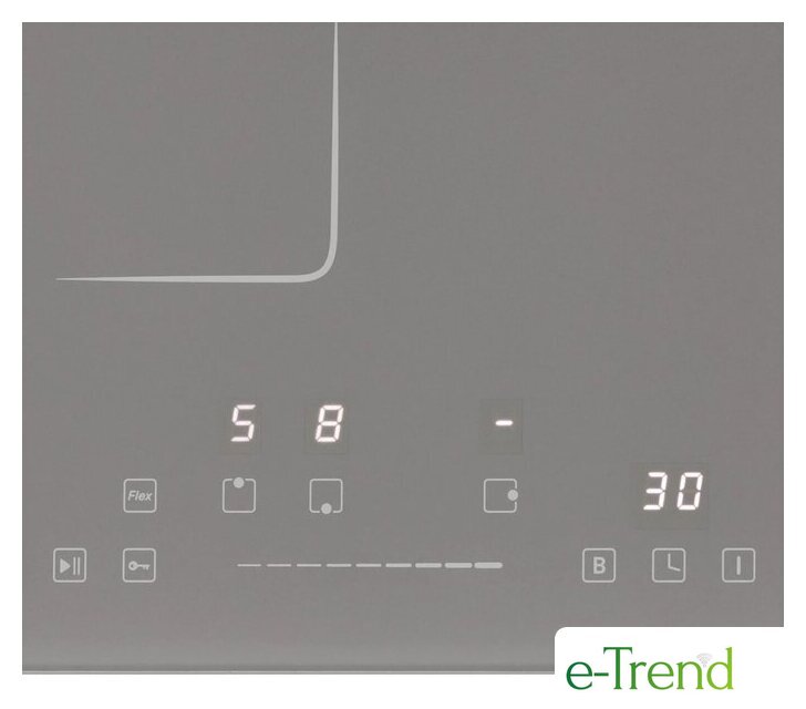 | Подробная информация о конфорках | Дальняя левая: 180 мм * 1,3/1,5 кВт; Ближняя левая: 180 мм * 1,9/2,2 кВт; Центральная правая: 210 мм * 2/3 кВт; Flex зона: 180х300 * 3/3,6 кВт |