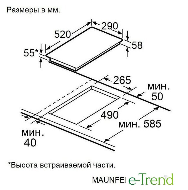 | Овальные/прямоугольные конфорки | нет |