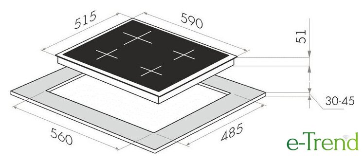 | Подробная информация о конфорках | Мощность конфорок, Вт.: 1500, 1500, 1500, 1500 |