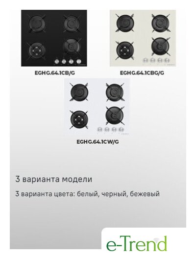 | Подробная информация о конфорках | 4 конфорки мощностью: 2600, 1700, 1700, 1000 Вт |