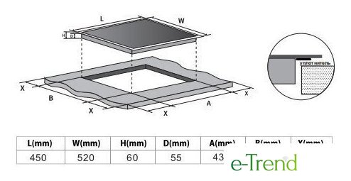| Подробная информация о конфорках | Передняя левая зона - 200x200 мм, 1500 Вт (бустер 1800 Вт); задняя левая зона - 200x200 мм, 1500 Вт (бустер 1800 Вт); правая зона - 180 мм, 1500 Вт (бустер 1800 Вт); Flex Zone - 200x430 мм, 2600 Вт (бустер 3000 Вт) |