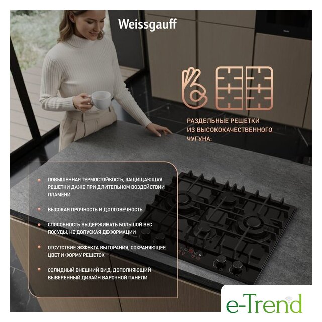 | Чугунные конфорки | нет |