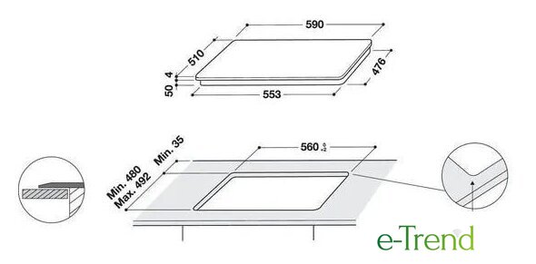 | Овальные/прямоугольные конфорки | 1 |