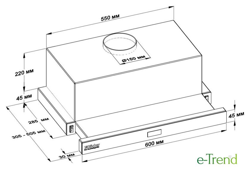 | Диаметр воздуховода | 150 мм |