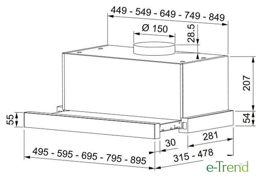 | Диаметр воздуховода | 150 мм |