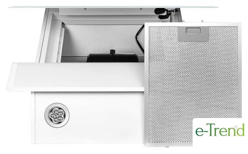 | Дополнительные функциональные особенности | Перед началом работы вытяжки, фронтальная панель автоматически открывается. |