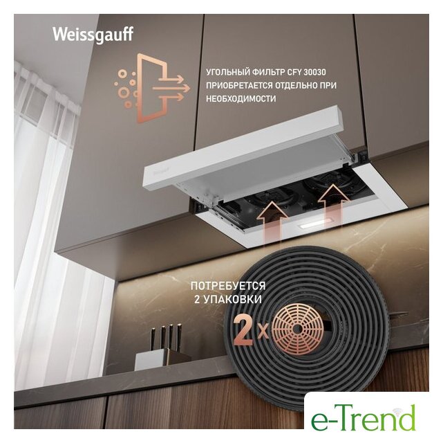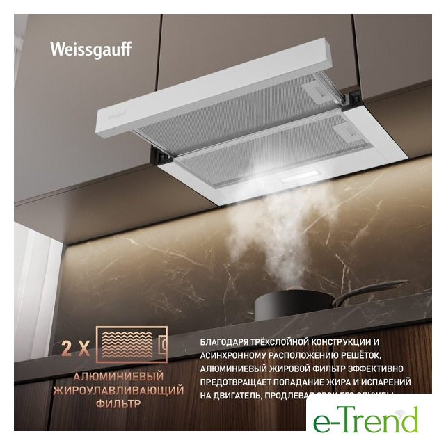 | Комплектация | вытяжка, 2 алюминиевых фильтра, инструкция |