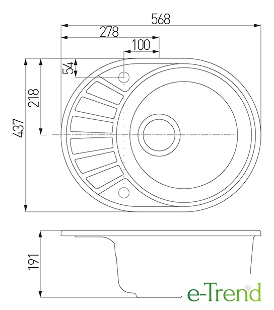 врезная на столешницу, искусственный камень, размеры: 56.8x43.7 см, в шкаф 40 см