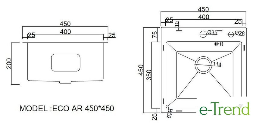 | Ширина мойки | 45 см |