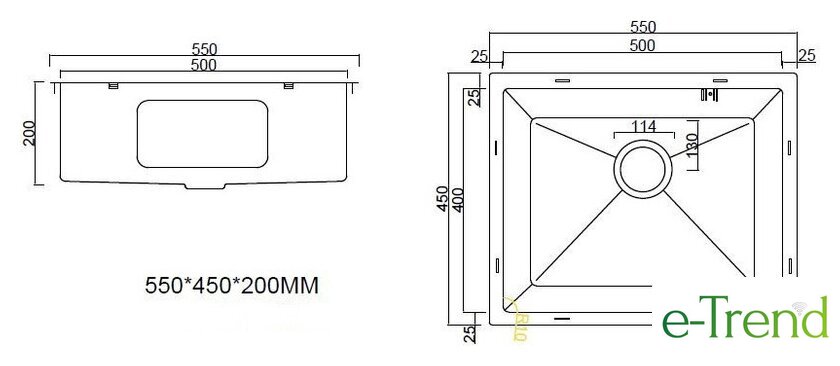 врезная под столешницу, нержавеющая сталь, размеры: 55x45 см