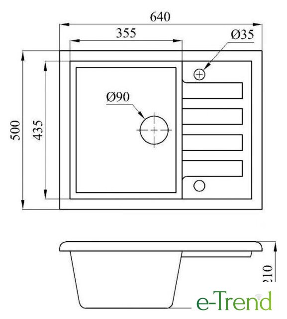 врезная на столешницу, искусственный камень, размеры: 50x64 см