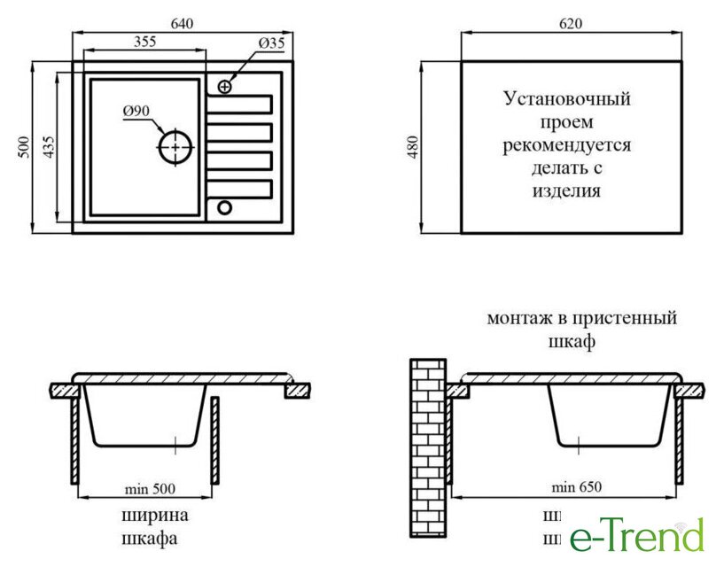 | Способ установки | врезная на столешницу |