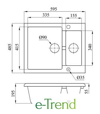 | Длина мойки | 59.5 см |