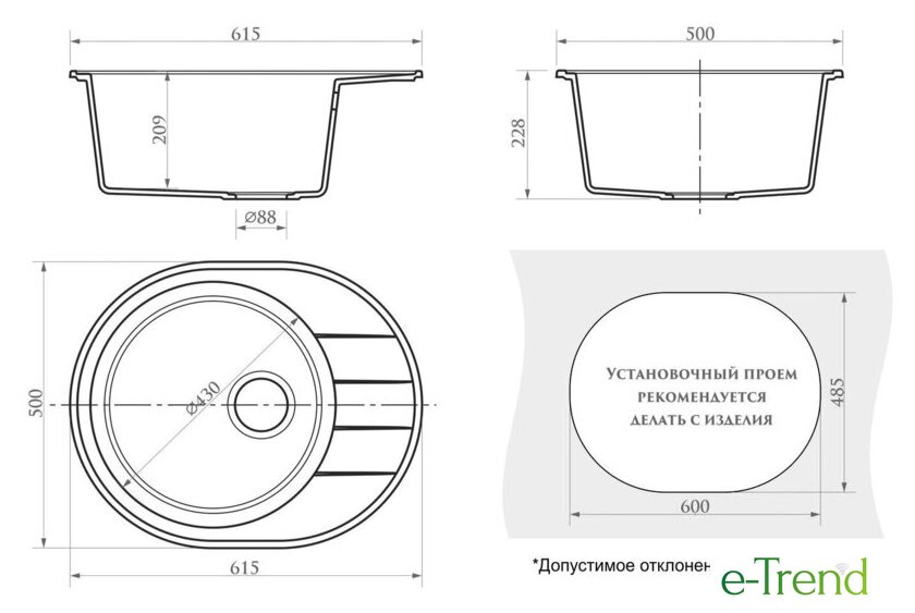 | Способ установки | врезная на столешницу |