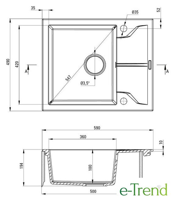 | Диаметр сливного отверстия | 3.5" |