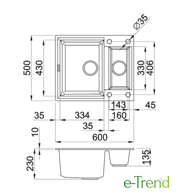 врезная на столешницу, искусственный камень, размеры: 60x50 см, в шкаф 60 см