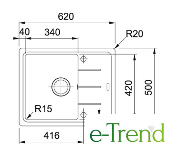 врезная на столешницу, искусственный камень, размеры: 62x50 см, в шкаф 45 см