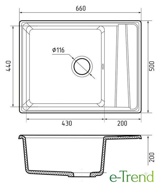 врезная на столешницу, искусственный камень, размеры: 66x50 см, в шкаф 50 см