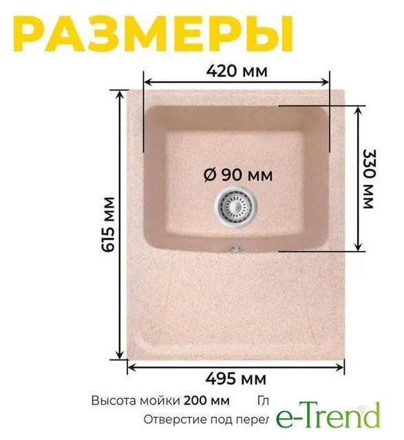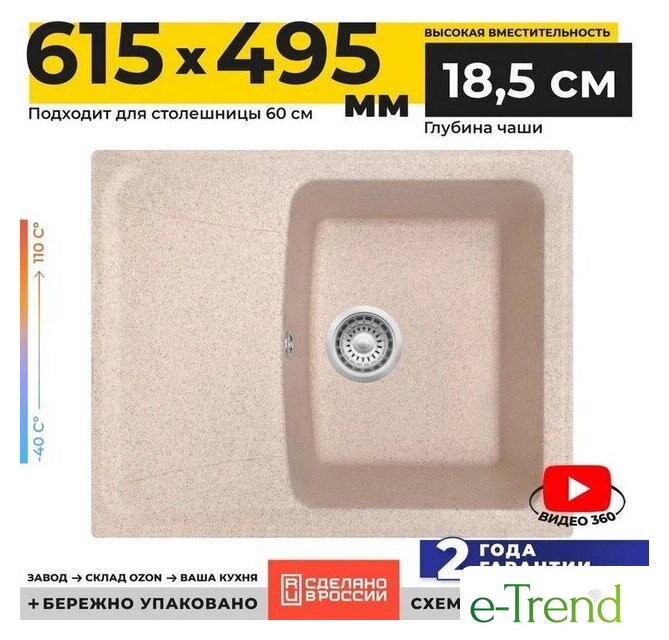 | Длина мойки | 61.5 см |