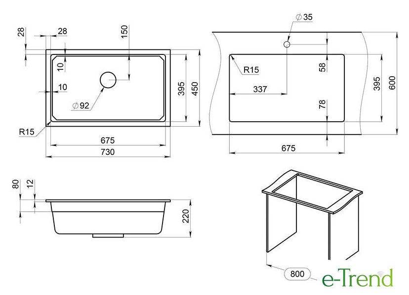 | Способ установки | врезная под столешницу |
