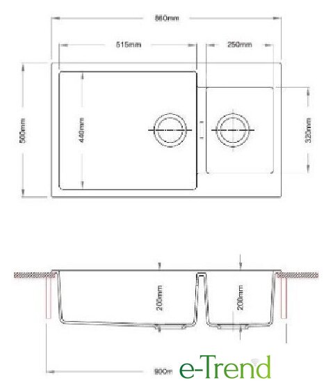 врезная на столешницу, искусственный камень, размеры: 86x50 см, в шкаф 90 см