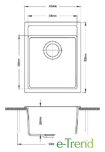 врезная на столешницу, искусственный камень, размеры: 40x50 см, в шкаф 50 см