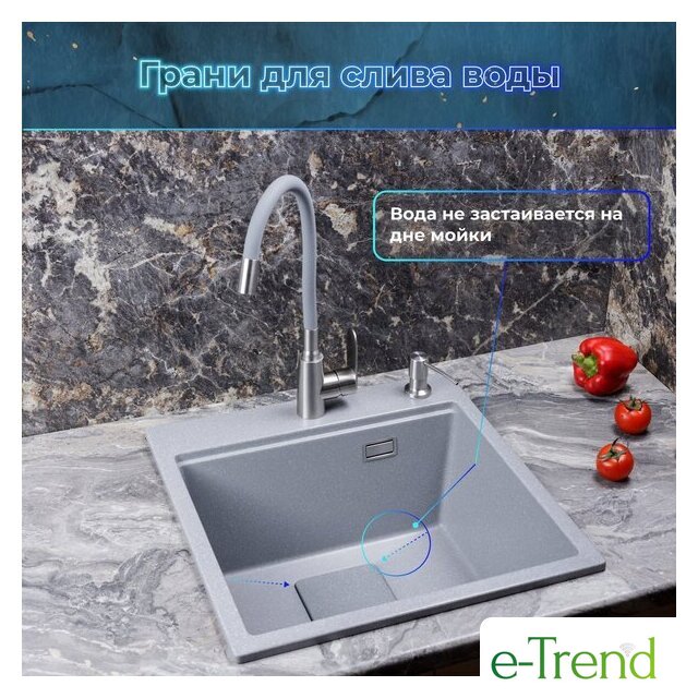 врезная на столешницу, искусственный камень, размеры: 50x50 см, в шкаф 55 см