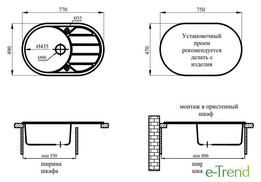 | Способ установки | врезная на столешницу |