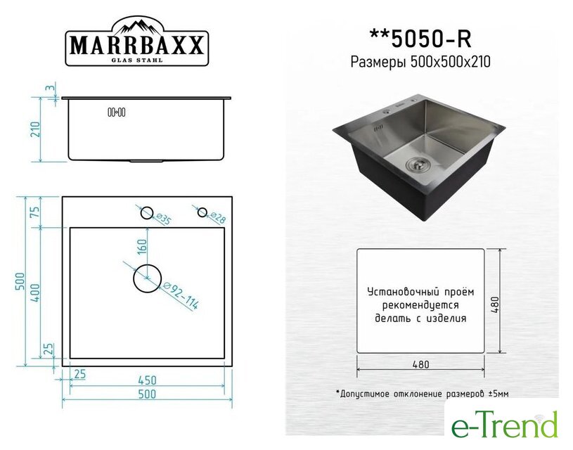 | Ширина мойки | 50 см |