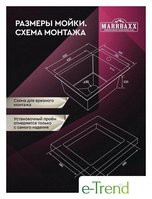 | Способ установки | врезная на столешницу |