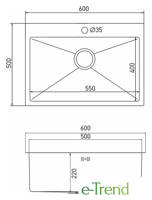 врезная на столешницу, нержавеющая сталь, размеры: 60x50 см, в шкаф 60 см