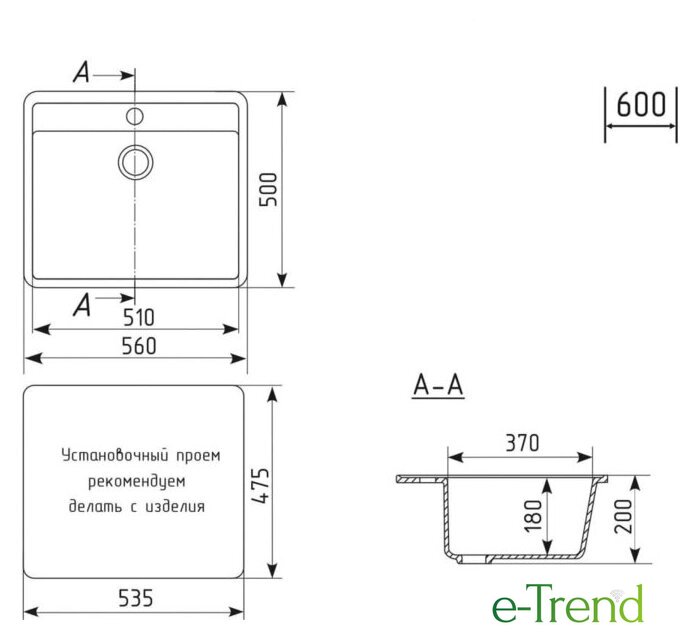 | Способ установки | врезная на столешницу |