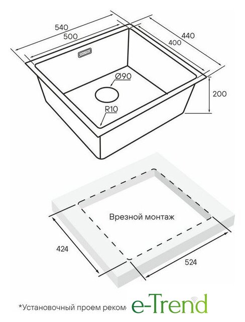 | Способ установки | врезная на столешницу, врезная под столешницу |