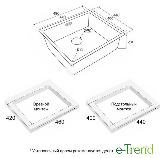 | Способ установки | врезная на столешницу, врезная под столешницу, врезная вровень со столешницей |