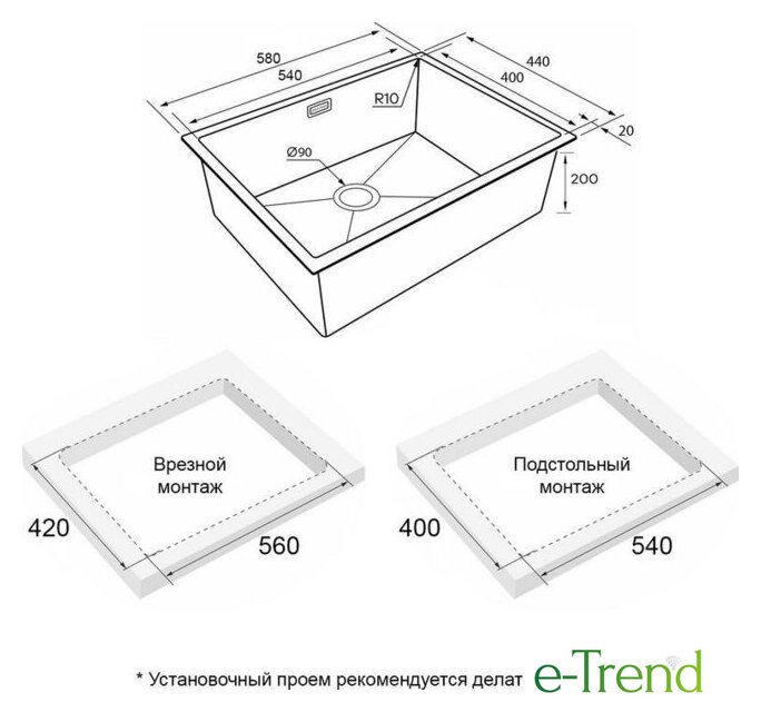 | Способ установки | врезная на столешницу, врезная под столешницу, врезная вровень со столешницей |