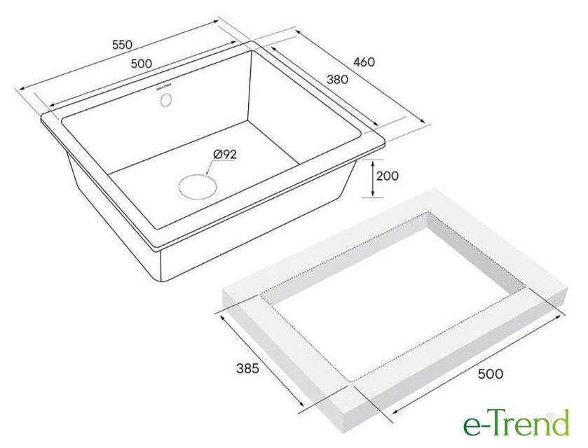 врезная на столешницу/врезная под столешницу/врезная вровень со столешницей, искусственный камень, размеры: 55x46 см, в шкаф 60 см