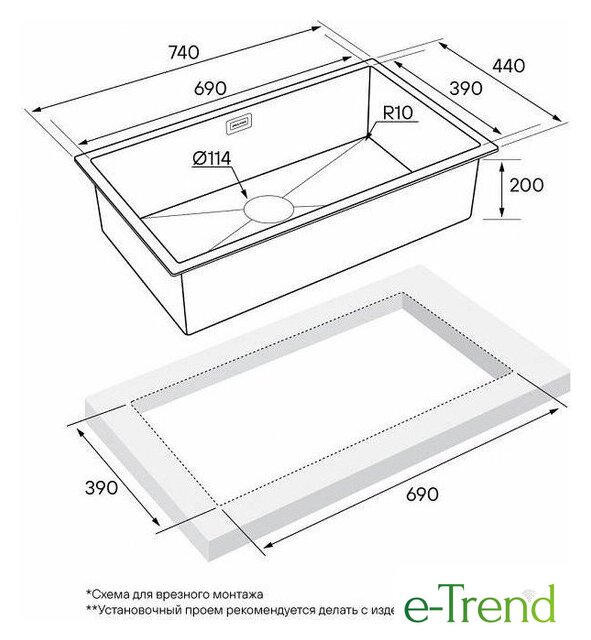 | Способ установки | врезная на столешницу, врезная под столешницу, врезная вровень со столешницей |